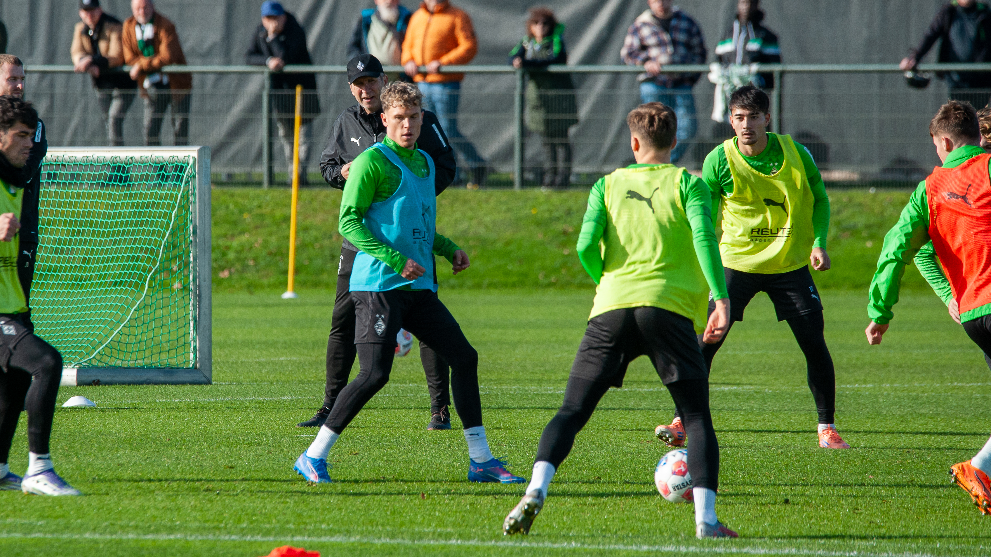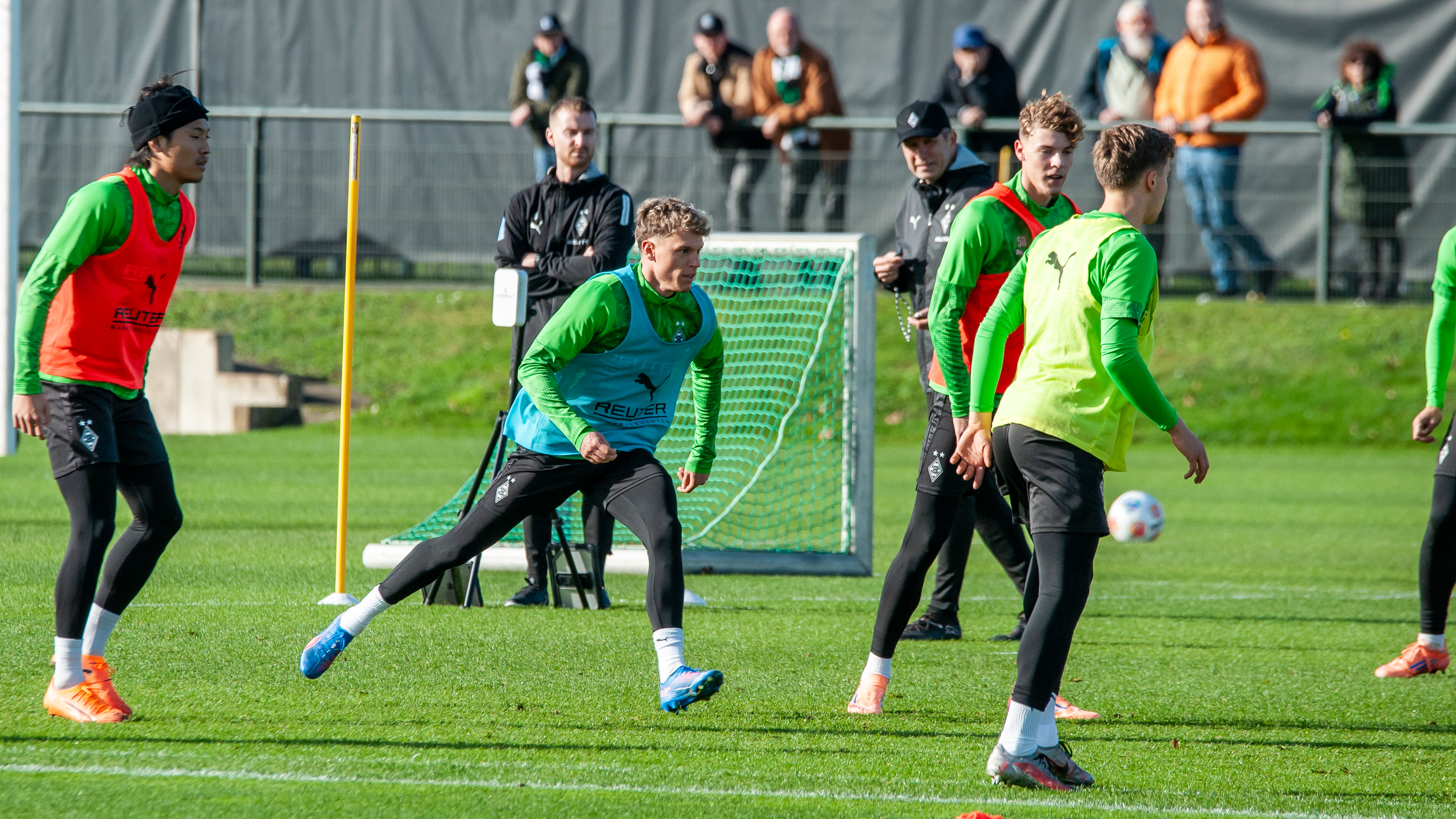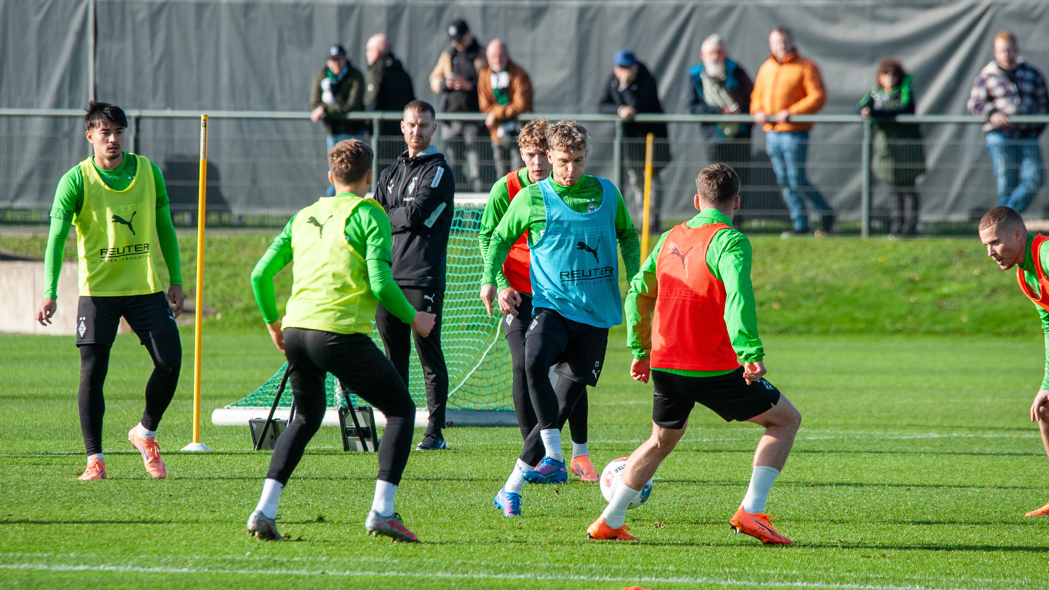 Tim Kleindienst war erneut auf dem Trainingsgelände am Fohlen Campus zu sehen. Der 29-jährige Stürmer, der sich am 10. Mai 2025 im Spiel gegen den FC Bayern München einen Meniskusschaden im rechten Knie zugezogen hatte, absolviert seit einigen Wochen regelmäßige Laufeinheiten und Stabilitätsübungen. Seine Bewegungen wirken zunehmend sicher und flüssig.