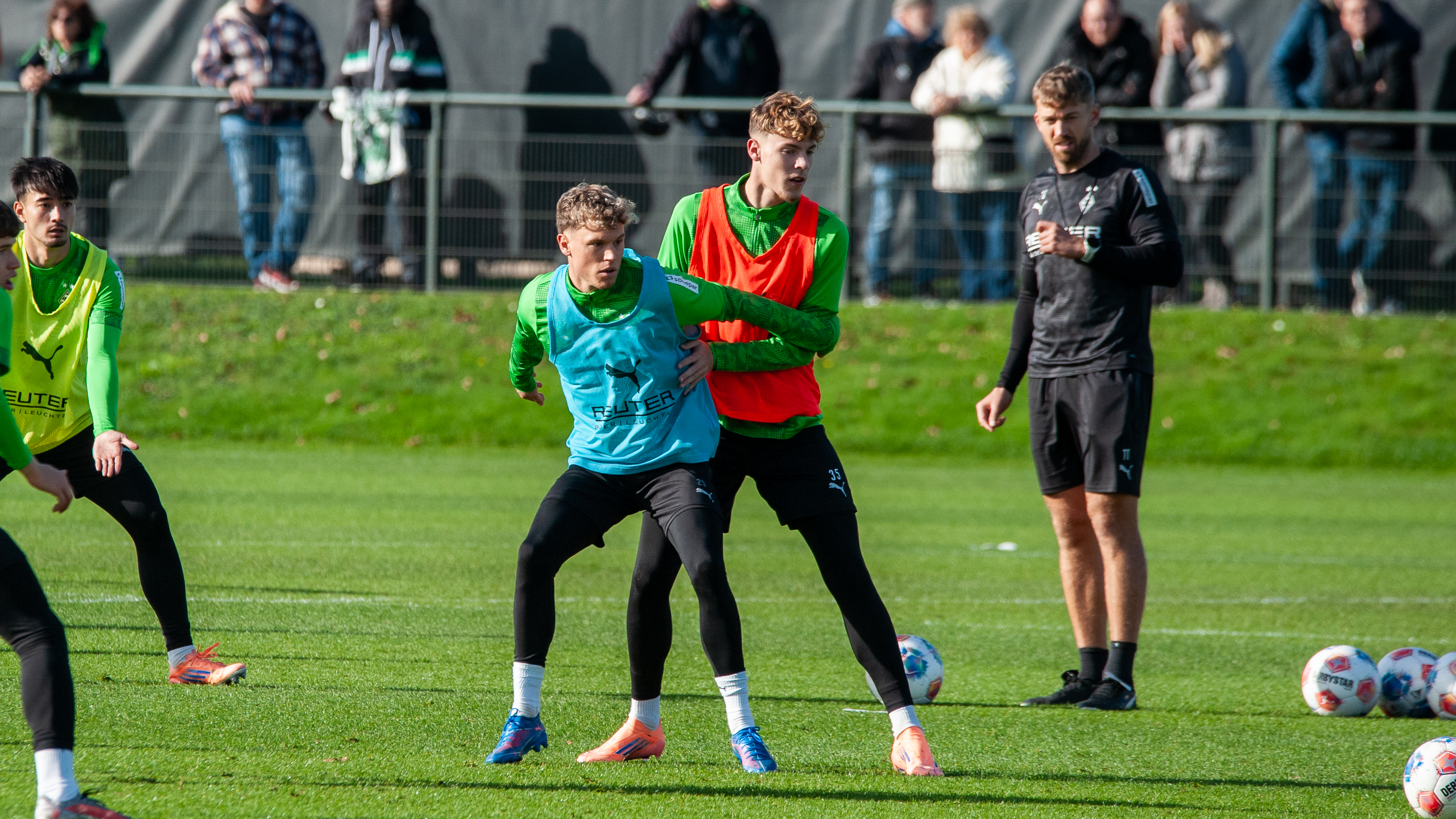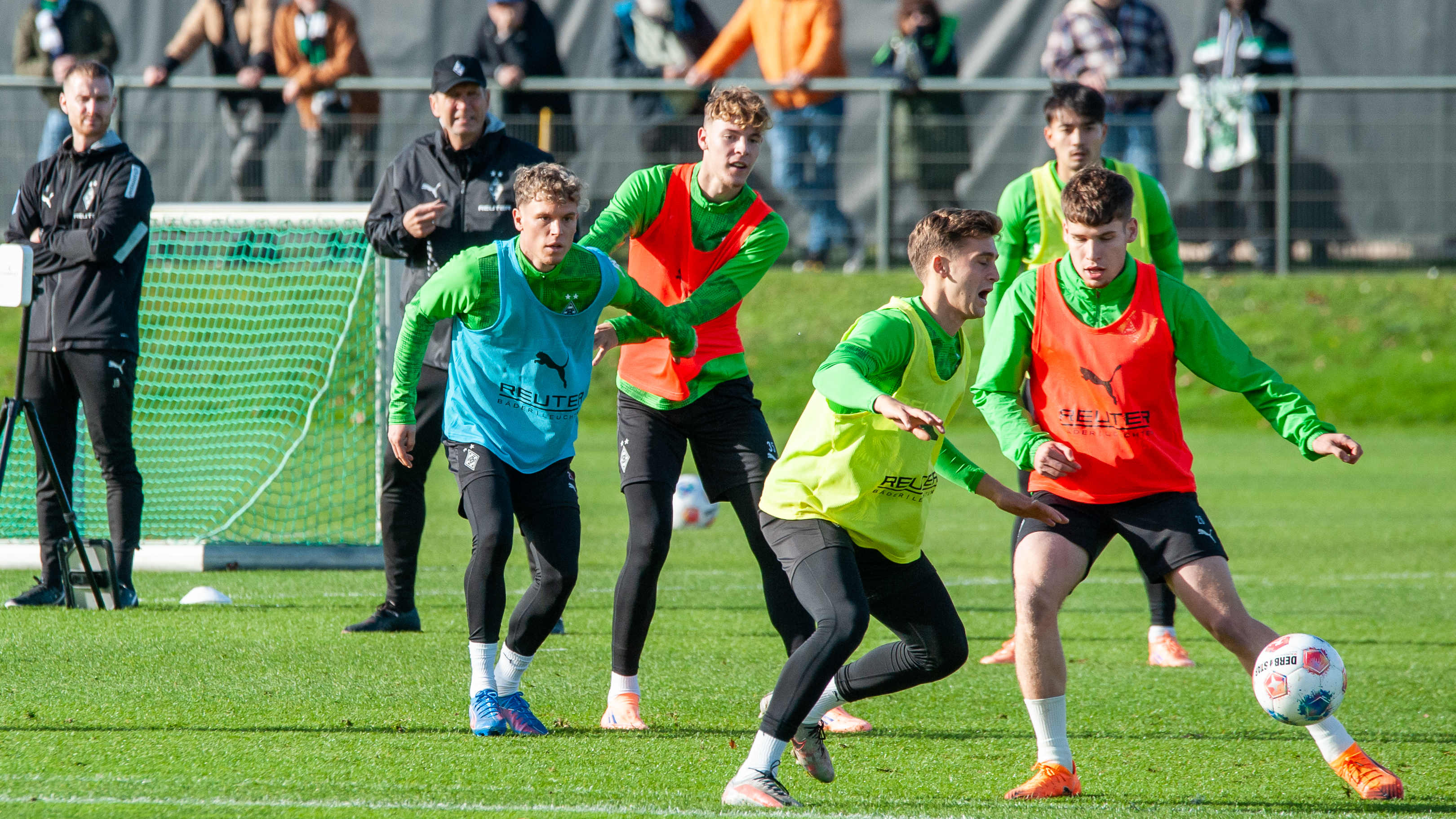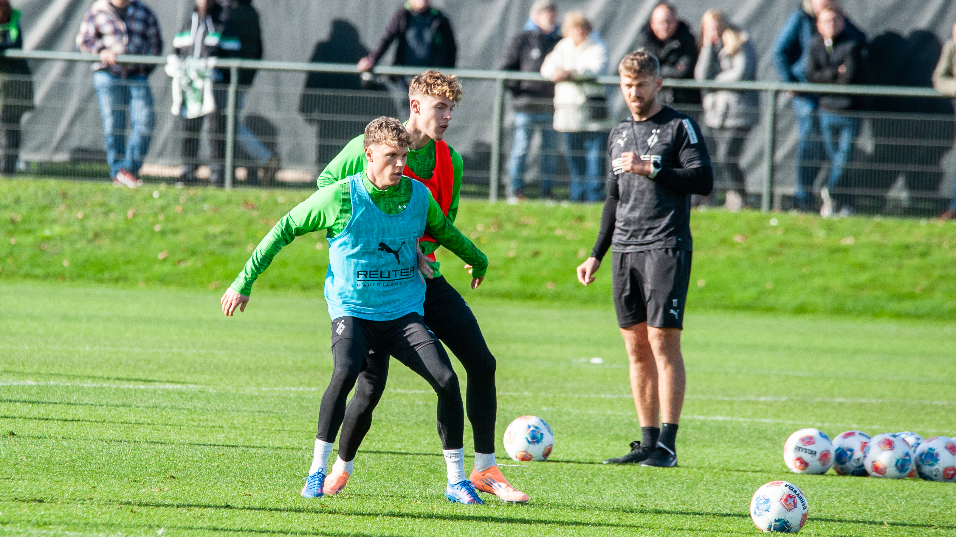 Tim Kleindienst war erneut auf dem Trainingsgelände am Fohlen Campus zu sehen. Der 29-jährige Stürmer, der sich am 10. Mai 2025 im Spiel gegen den FC Bayern München einen Meniskusschaden im rechten Knie zugezogen hatte, absolviert seit einigen Wochen regelmäßige Laufeinheiten und Stabilitätsübungen. Seine Bewegungen wirken zunehmend sicher und flüssig.