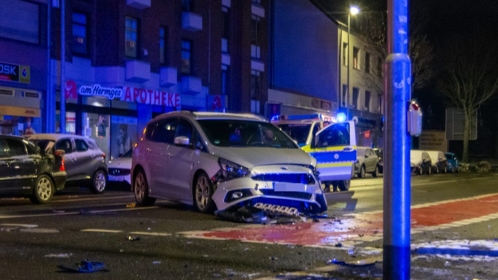 Was folgte, war ein folgenschwerer Fluchtversuch. Der Fahrer des Mietwagens beschleunigte stark und versuchte, einen vorausfahrenden PKW rücksichtslos zu überholen. Dabei kollidierten die beiden Fahrzeuge. Durch die Wucht des Aufpralls verlor der flüchtende Wagen die Bodenhaftung, schoss über eine Mittelinsel und krachte schließlich in die Hauswand eines Mehrfamilienhauses, wo er zum Stillstand kam.
